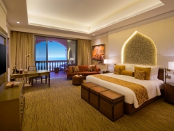 Стаите във величествения хотел са така ситуирани да покажат невероятната гледка към Арабския залив. Ако сте почитатели на лукса и цените качествения петзвзден сервиз, тук със сигурност ще го намерите. Помещенията са просторни, предлагат най-новите в света технологии съчетани с 24- часова грижа от персонален иконом.