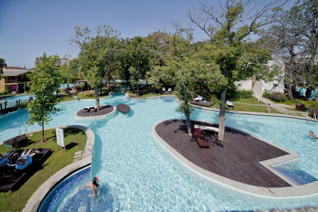 Басейн: прясна вода, аквапарк със 7 водни пързалки (безплатно), чадъри (безплатно), шезлонги (безплатно), кърпа за баня (безплатно)