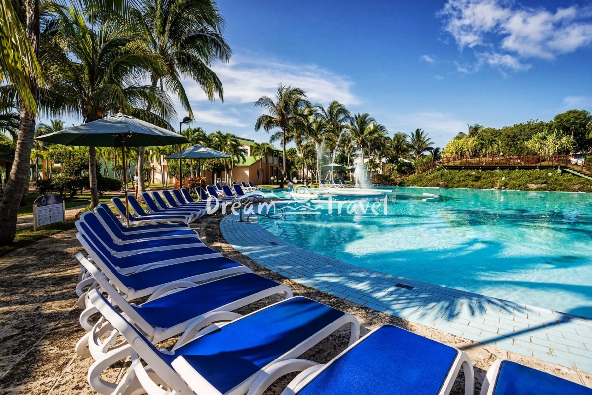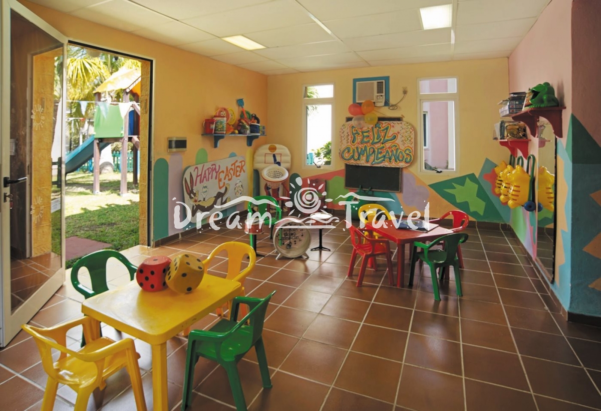 Хотел: Подходящият за семейства курорт е сгушен в тропическа среда и се простира върху 36 двуетажни бунгала, всяка с по шест до осем единици. Хотелът разполага с основна сграда с просторно открито фоайе с лоби бар и рецепция. От там палмова алея ще ви отведе до центъра на курорта. Отпуснете се в големия плувен басейн с отделна зона за деца. Слънчевата тераса (шезлонги, чадъри и кърпи на басейна и на плажа без допълнително заплащане) Ви кани да се забавлявате. Ще се поглезите в основния / бюфет-ресторант "La Colina" и в трите а-ла-карт ресторанта с вкусни италиански, кубински и мексикански специалитети, както и снек-бар, който е отворен 24 часа и предлага всички видове деликатеси за малкия апетит. Барът "Siboney" и плажният бар "Taino" предлагат прохладни напитки. За по-малките гости се грижи за мини-клуба (от 4 до 12 години). Ежедневните развлекателни програми и вечерните шоута на живо няма да ви оставят да скучаете. Мини-маркет, пералня, медицинско обслужване, магазин за сувенири, бар за пури, бутик и Wi-Fi във фоайето